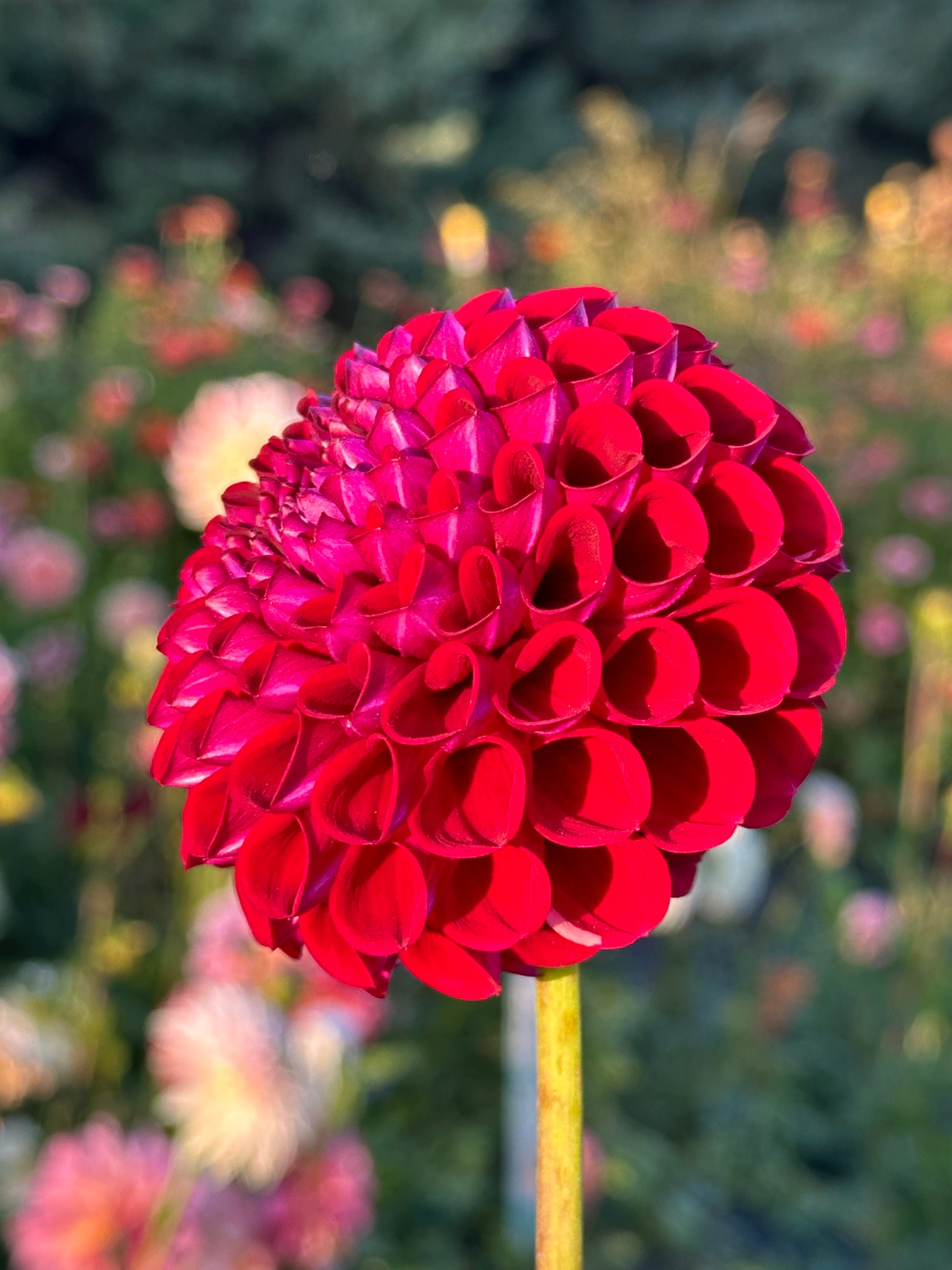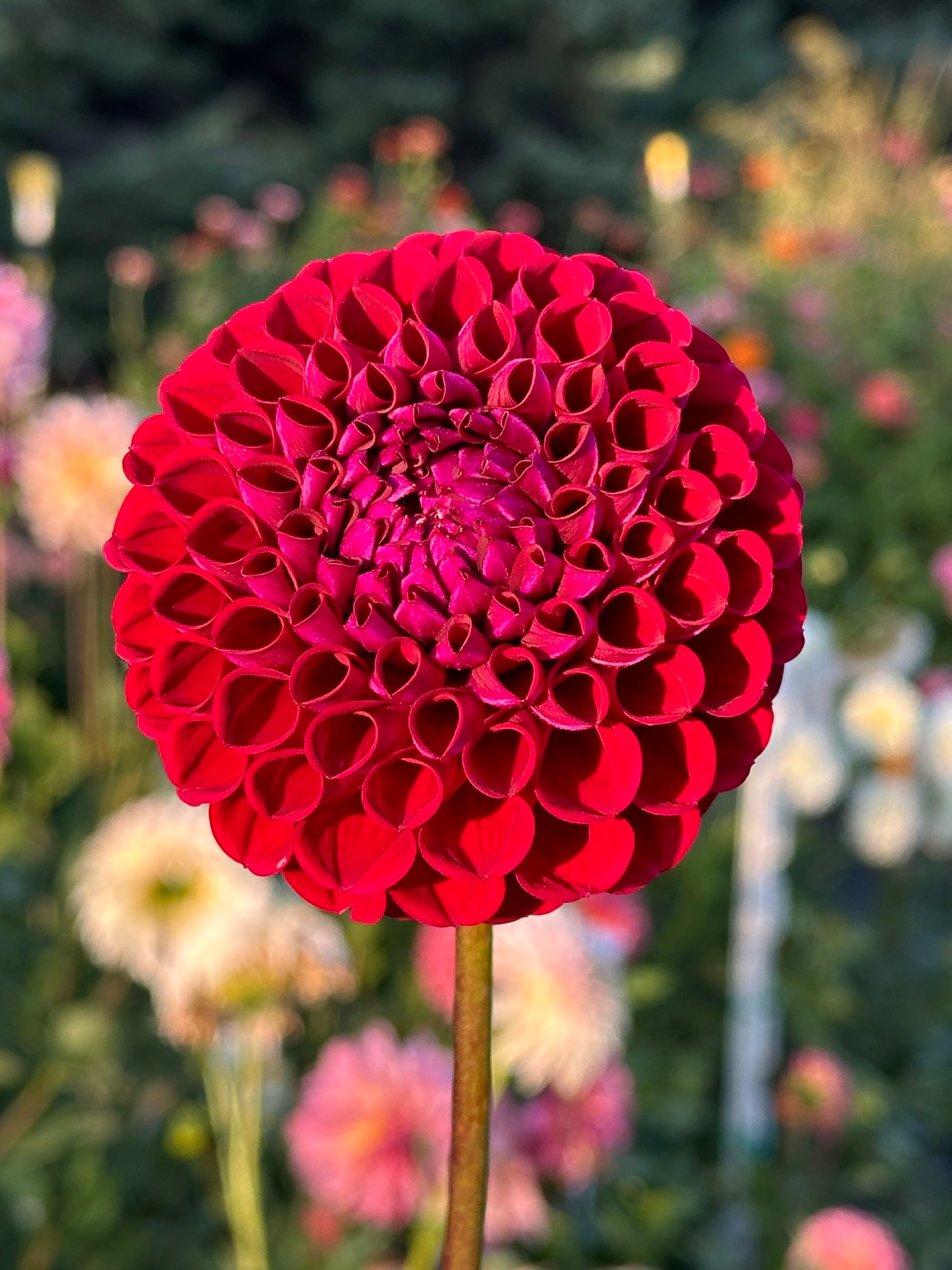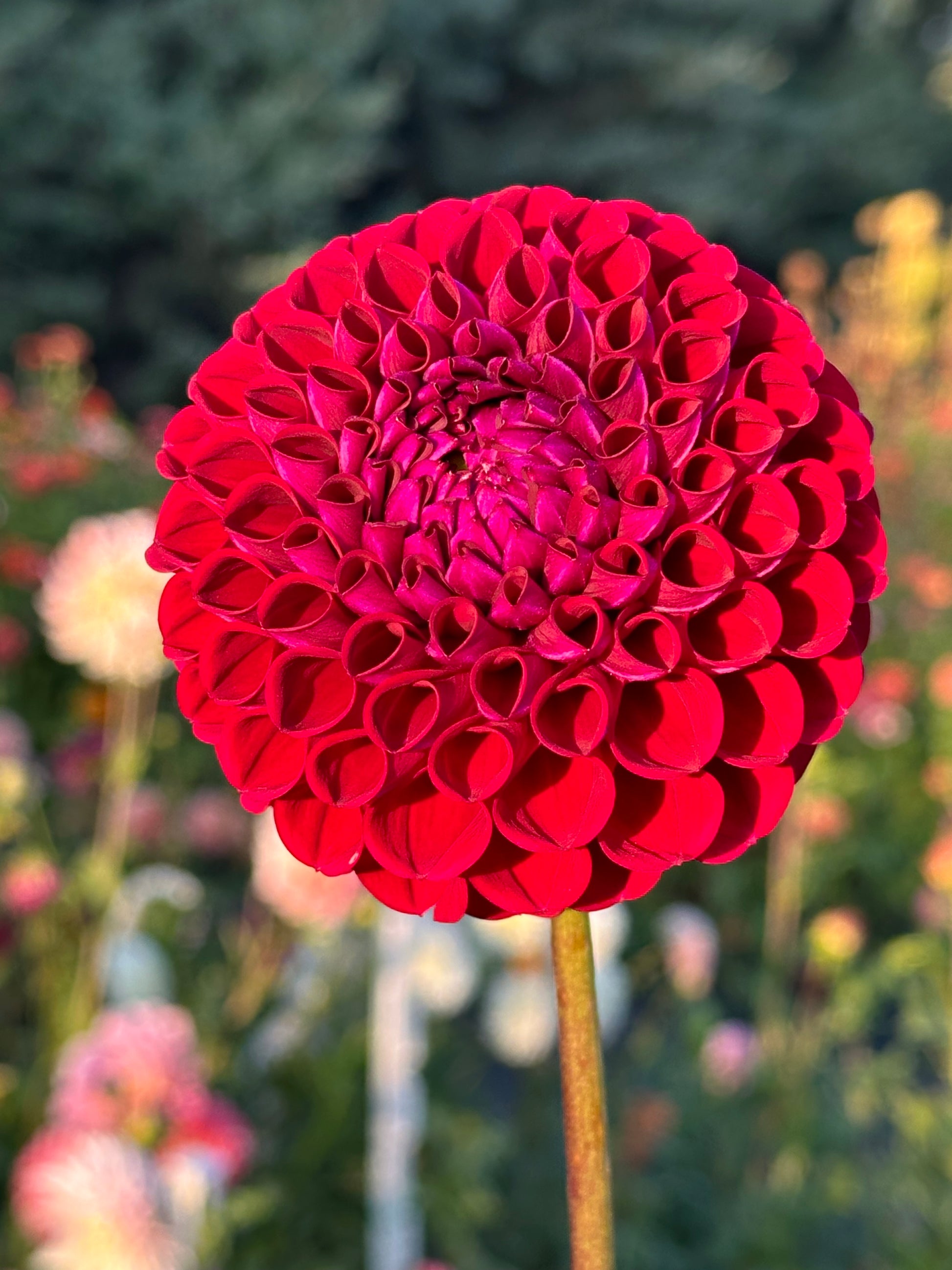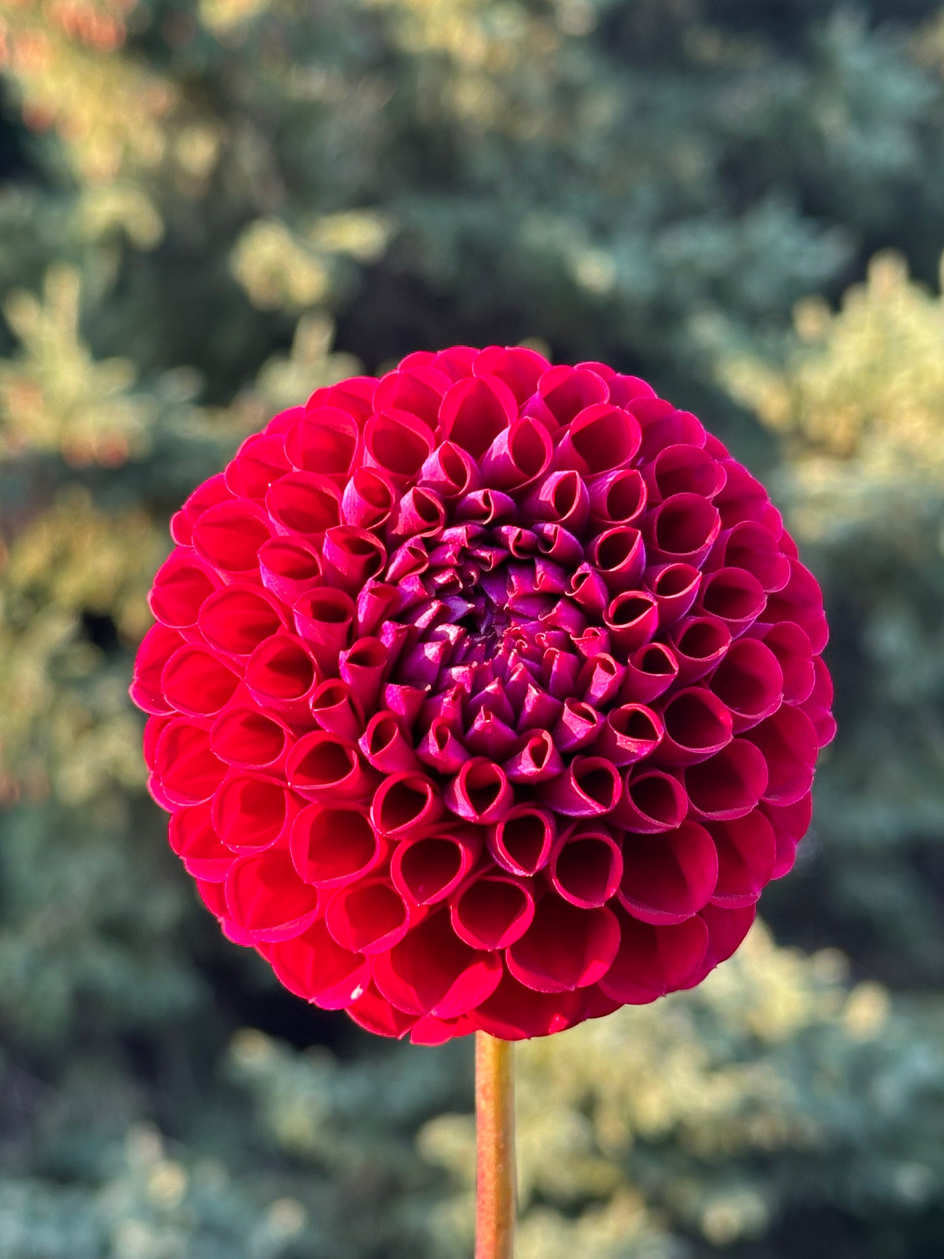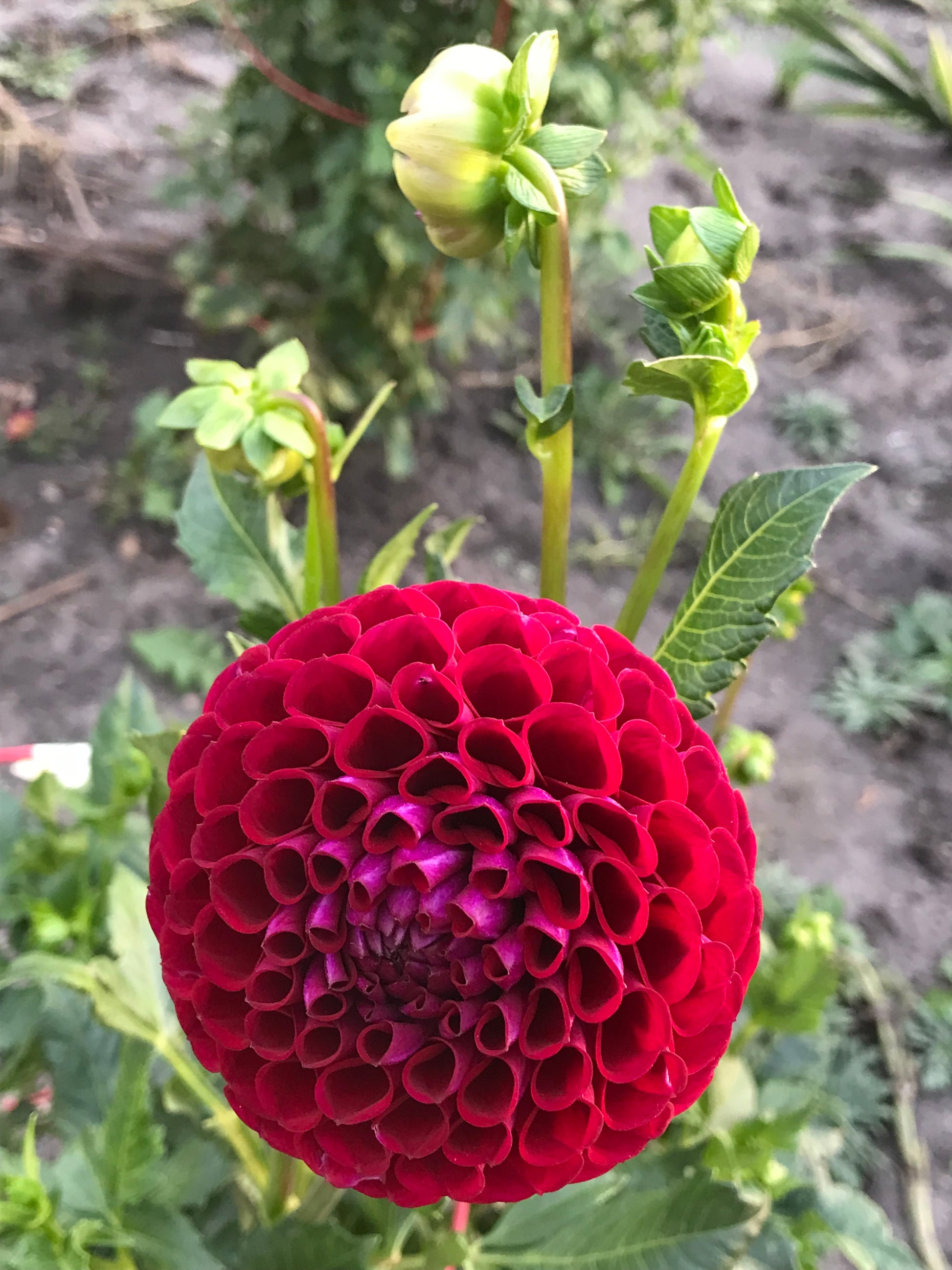 Ivanetti is a gorgeous burgundy ball dahlia. In the sun she looks red, in the shade or inside you can see her true burgundy purple colors. An excellent cut flower.