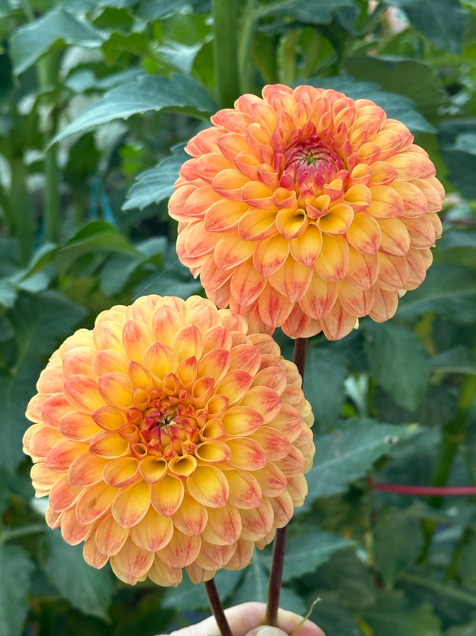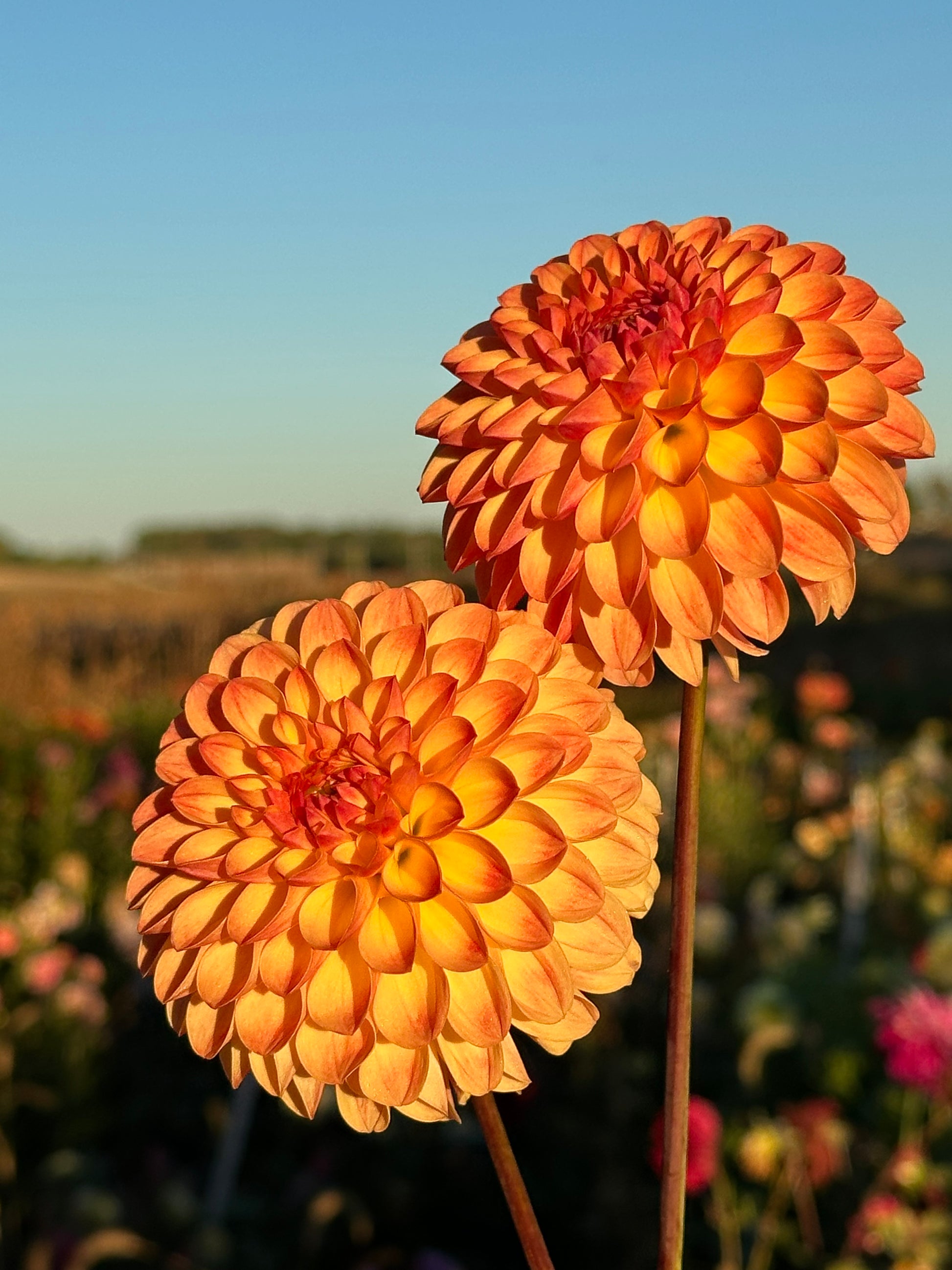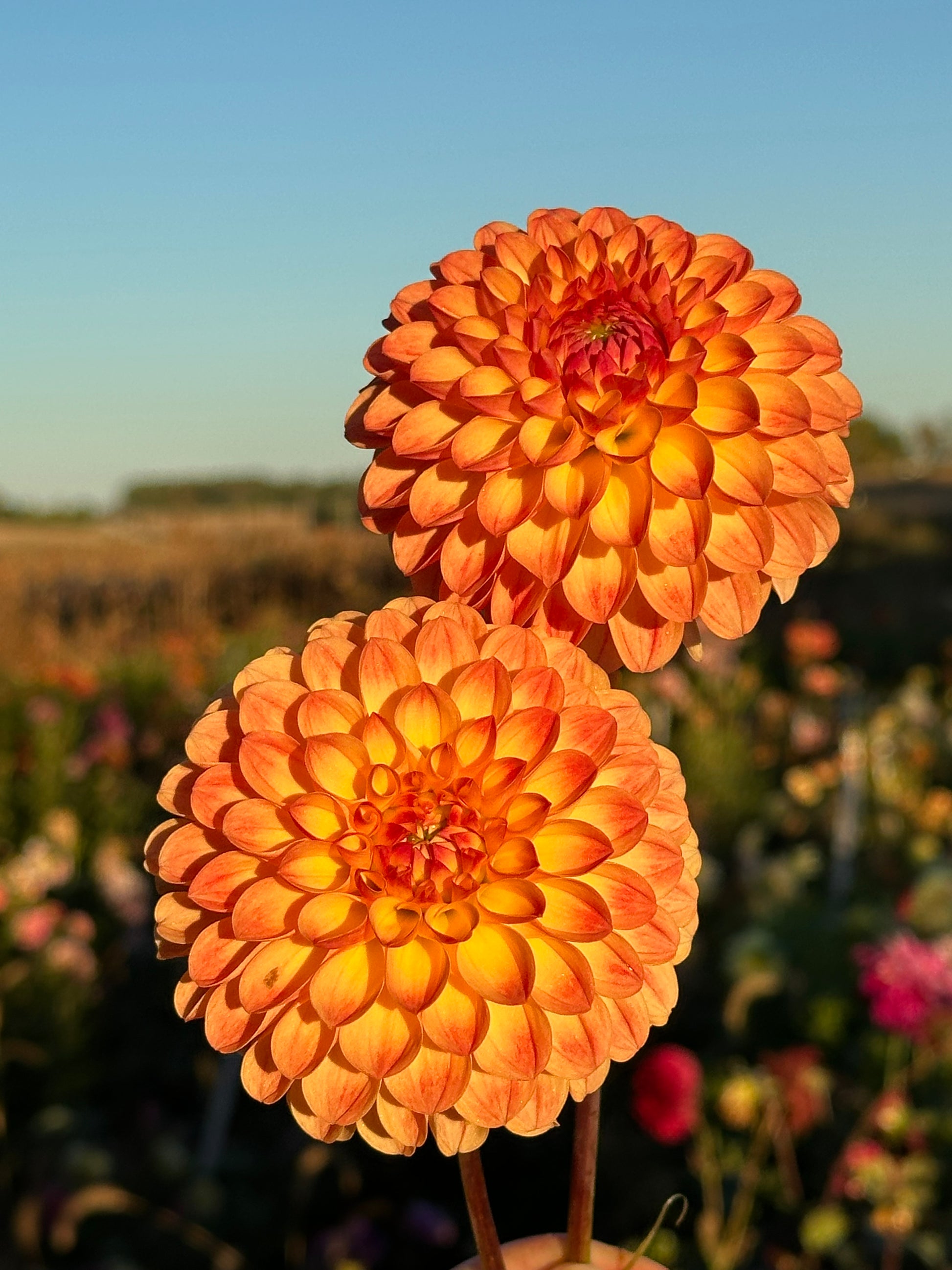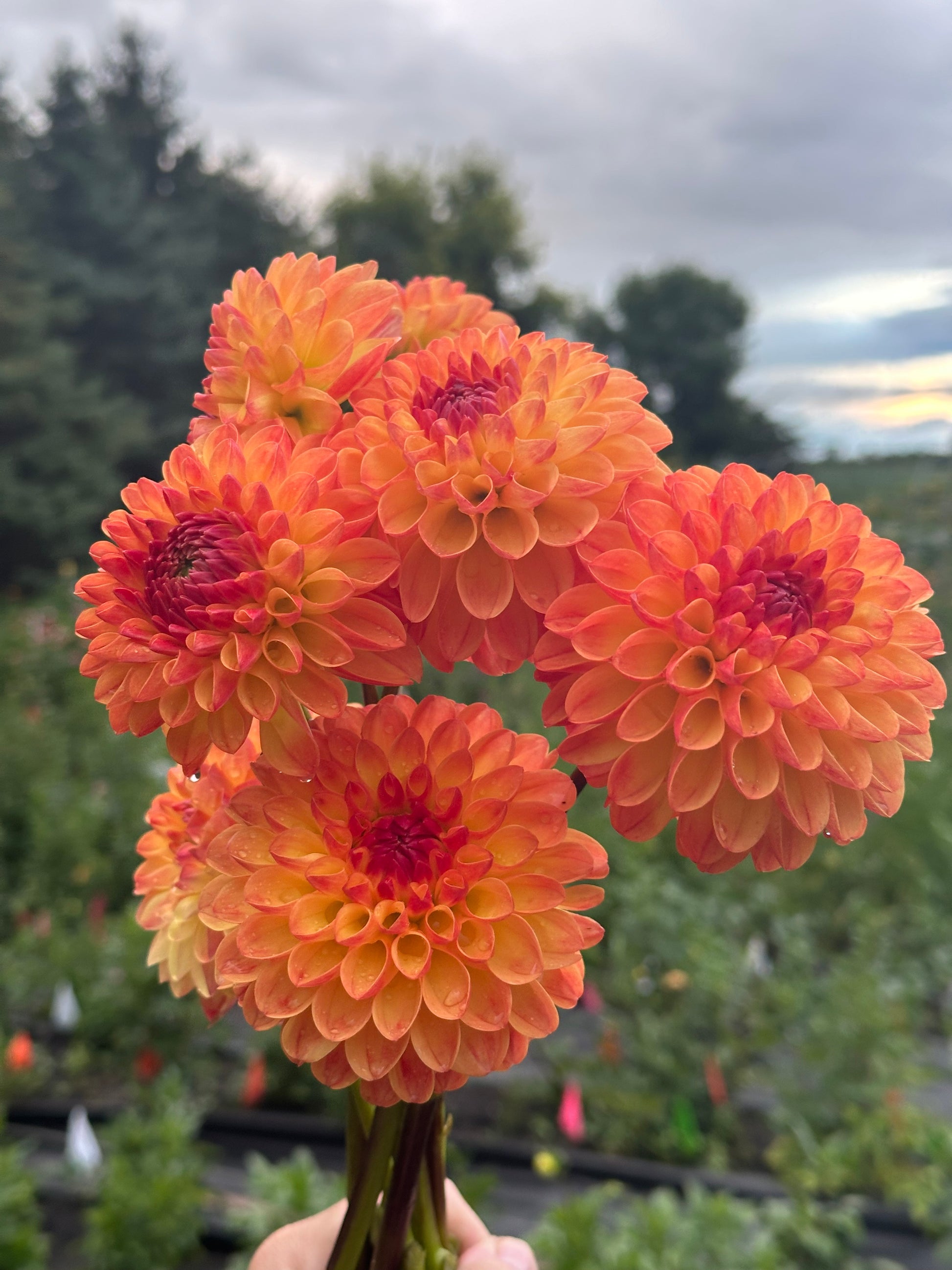 Jowey Chantal is one of my favorite dahlias. Early in the season the orange was more vibrant and as the season fades it becomes more subtle. Every variation was just stunning. Paired with other golds and reds it is breathtaking in an arrangement.