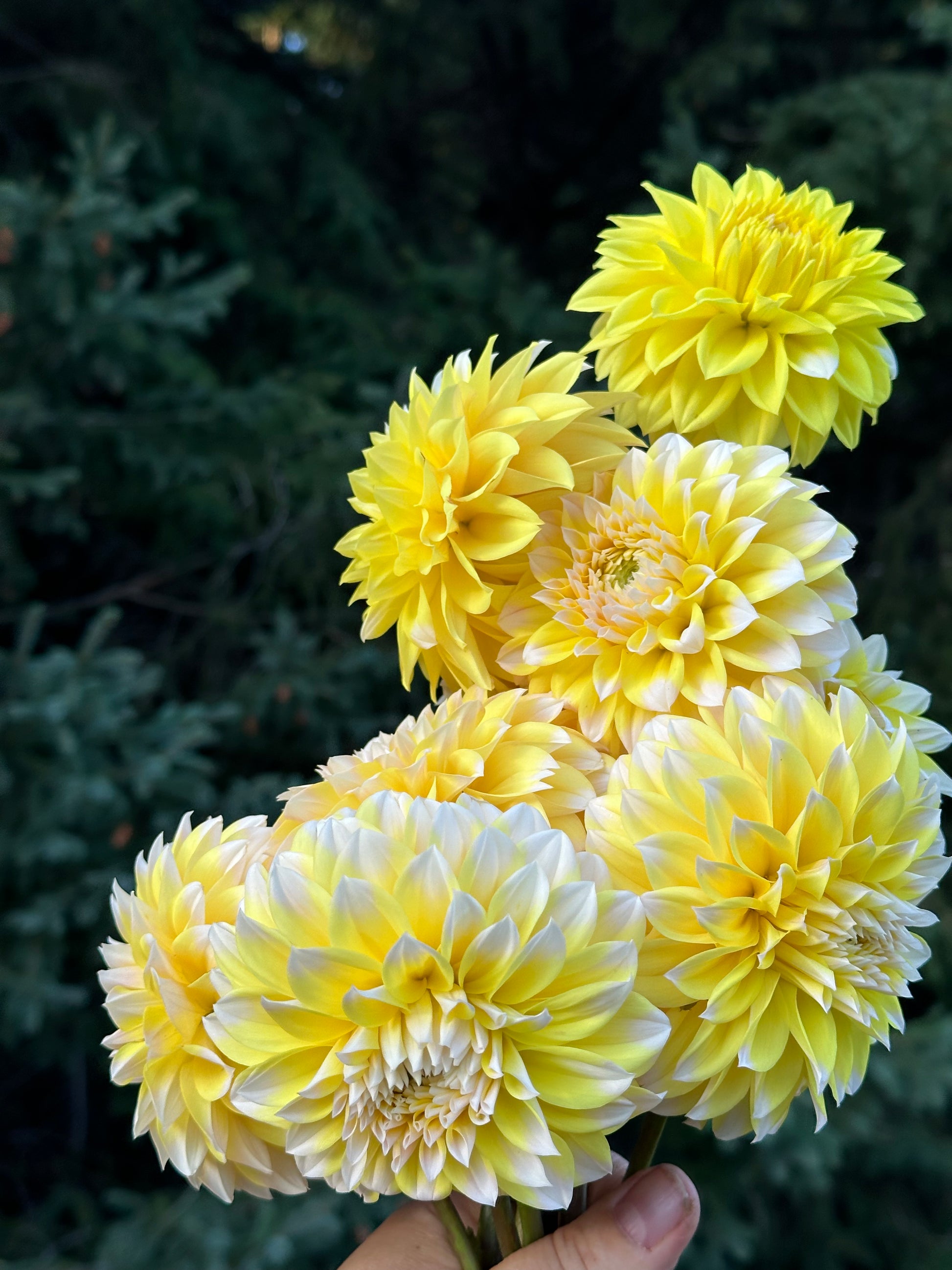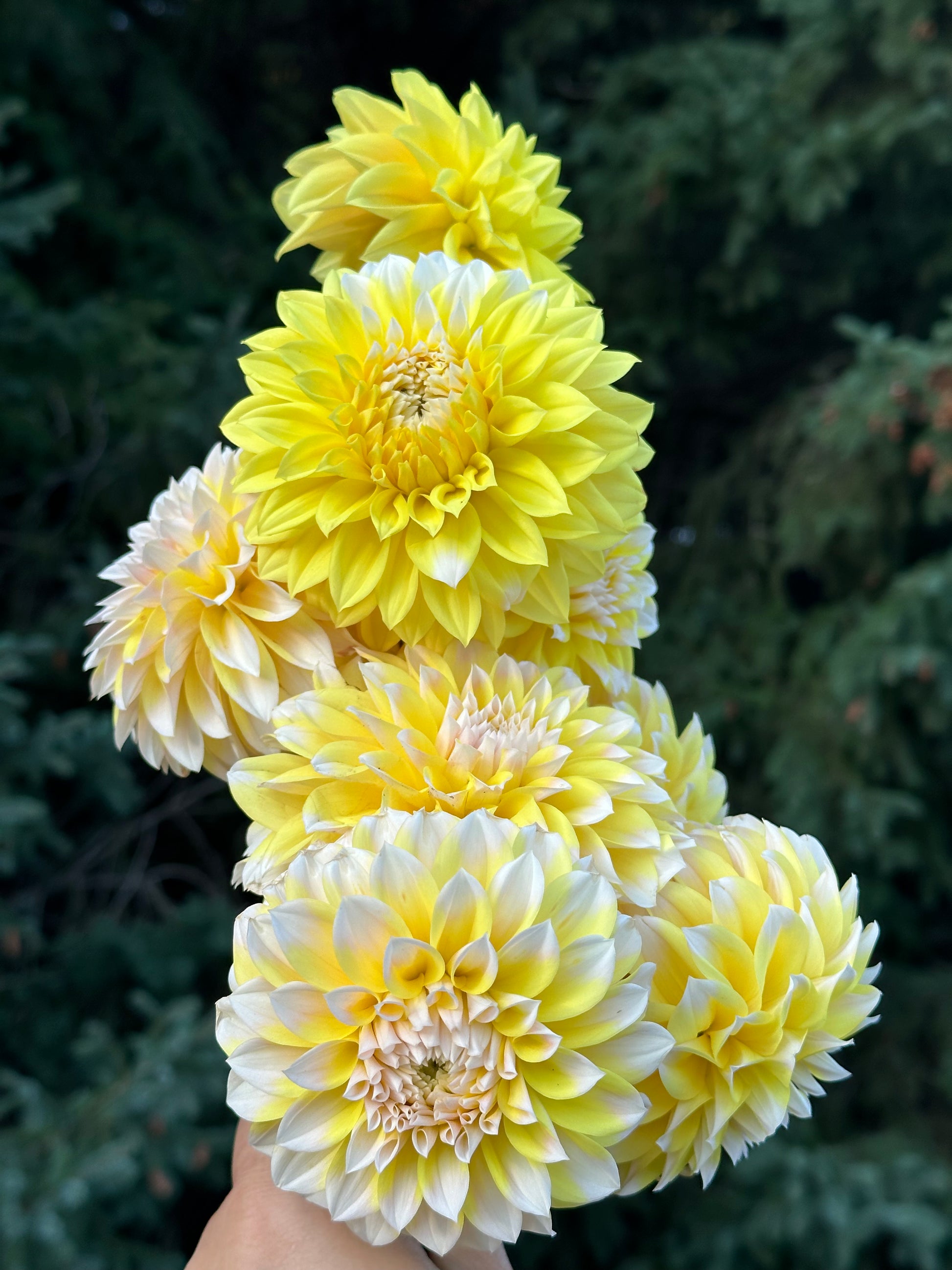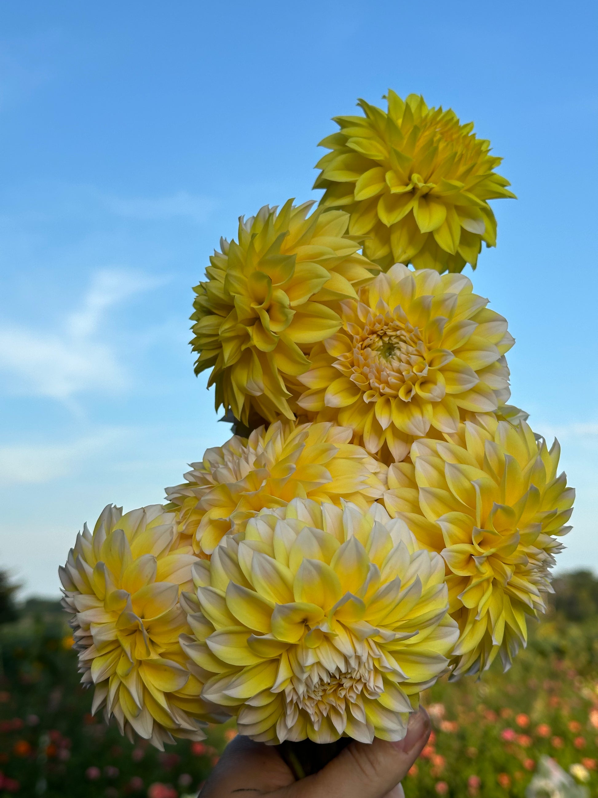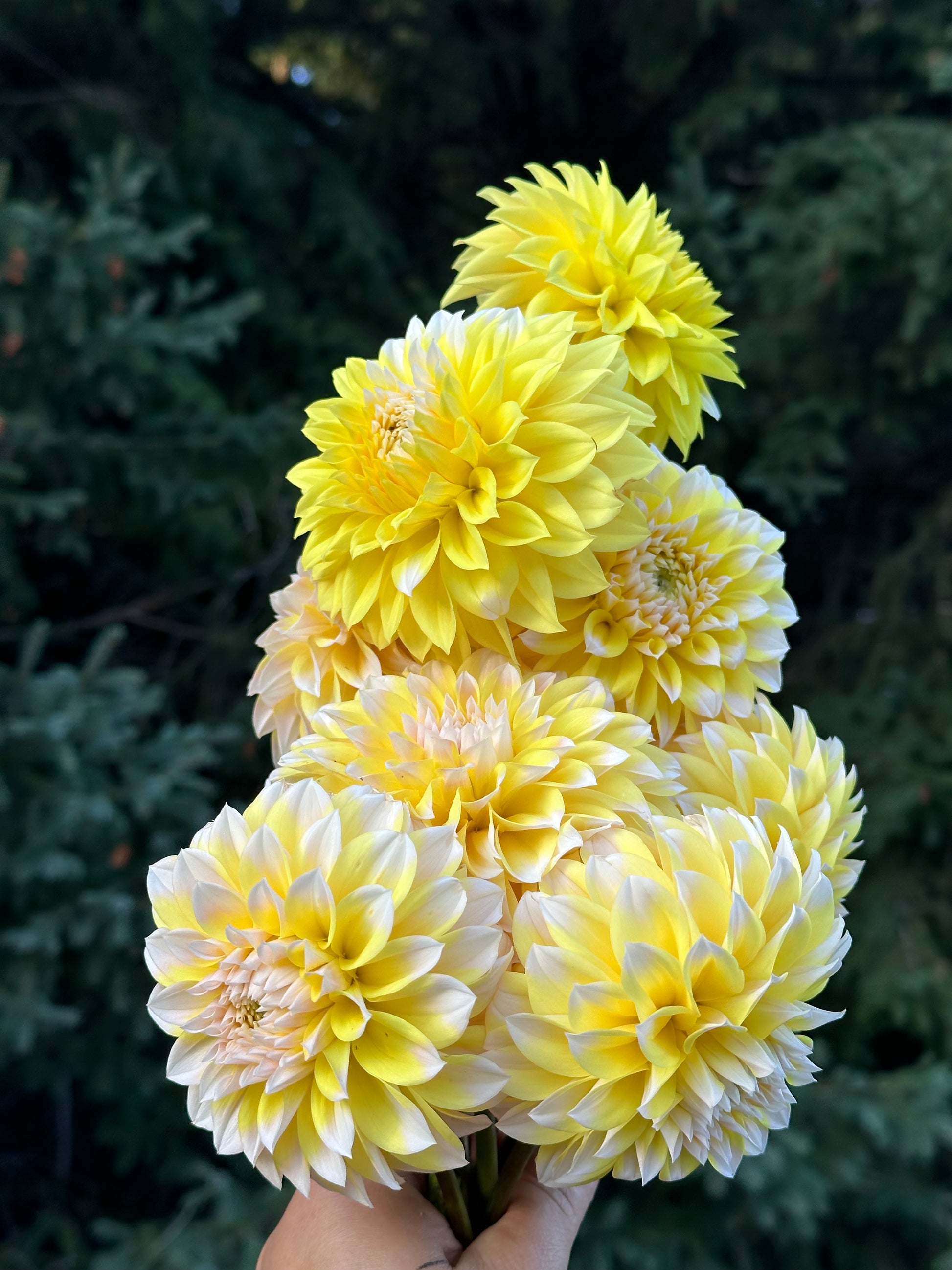 Ova Jo is one of the dahlias that first captured my heart. Bright buttery yellow fading to white edges. She has always been generous with blooms and a vigorous plant.