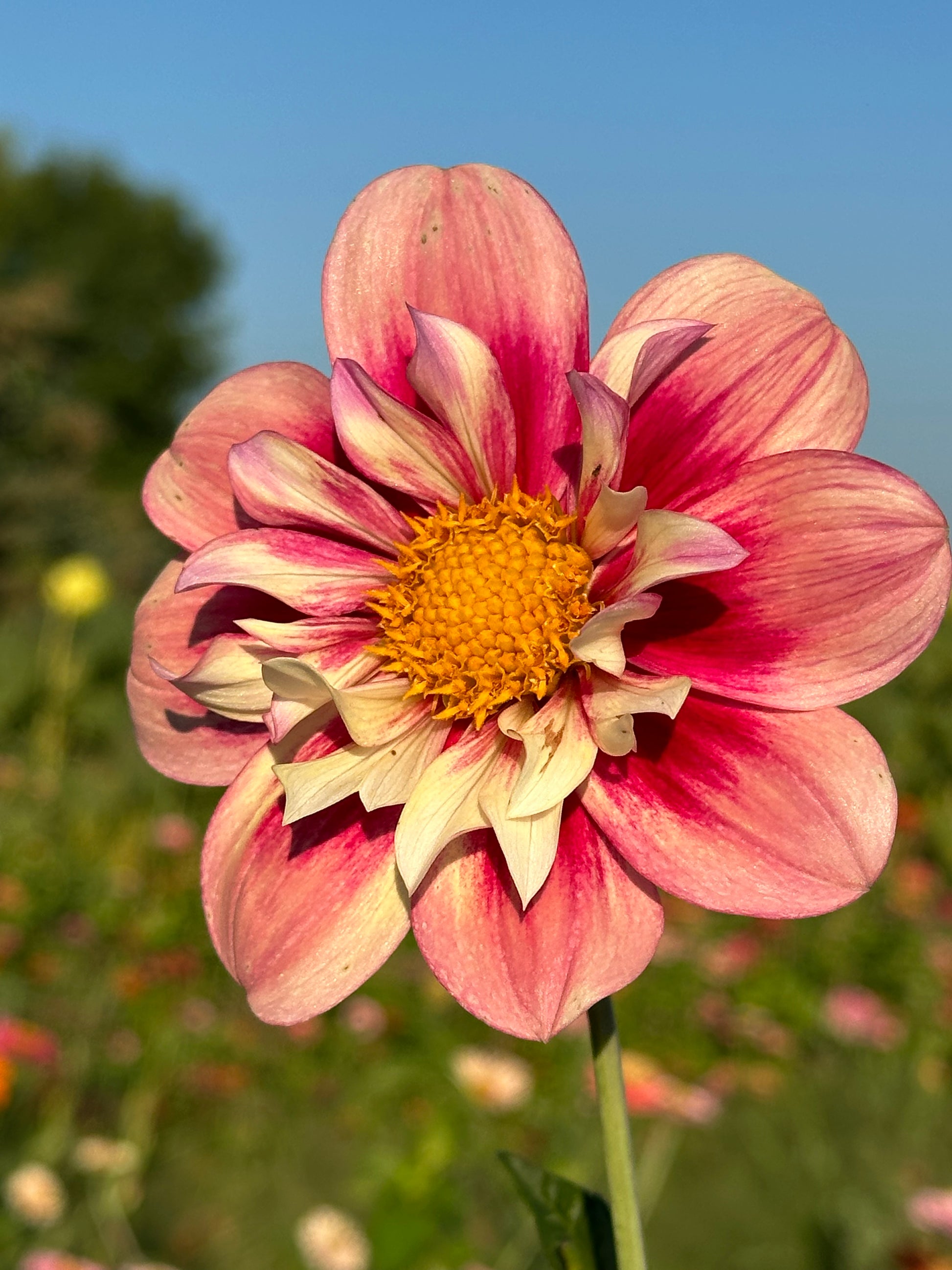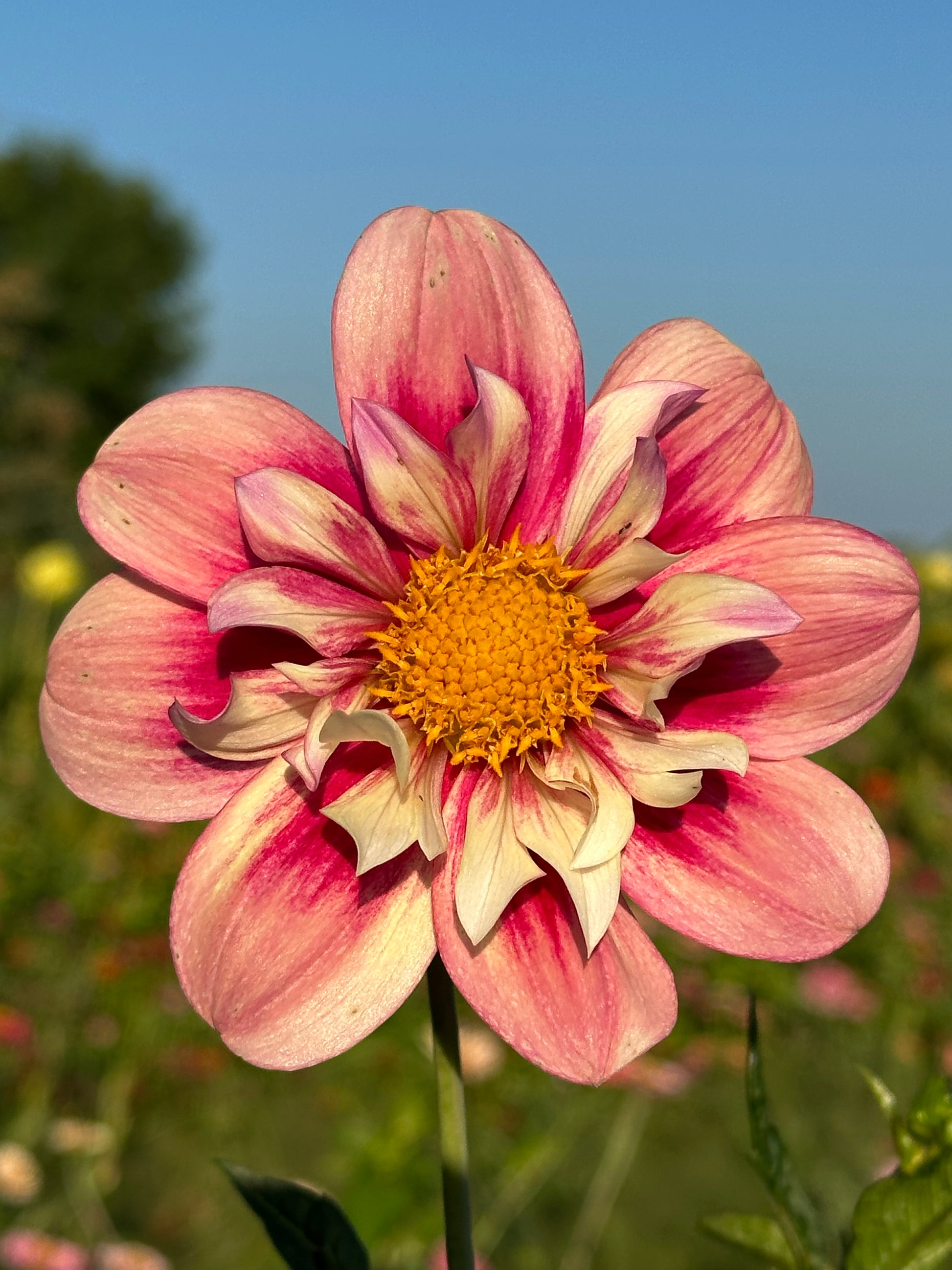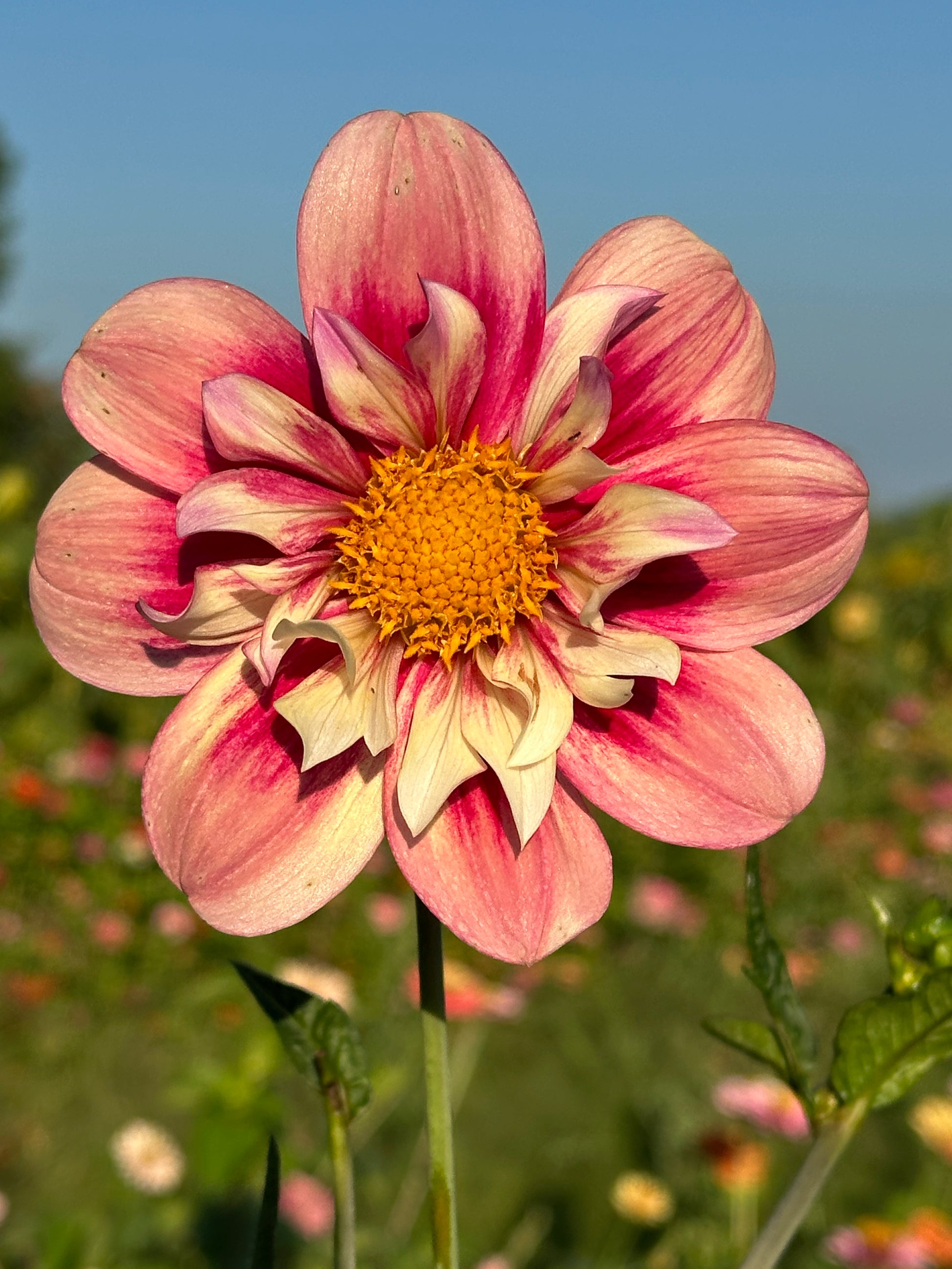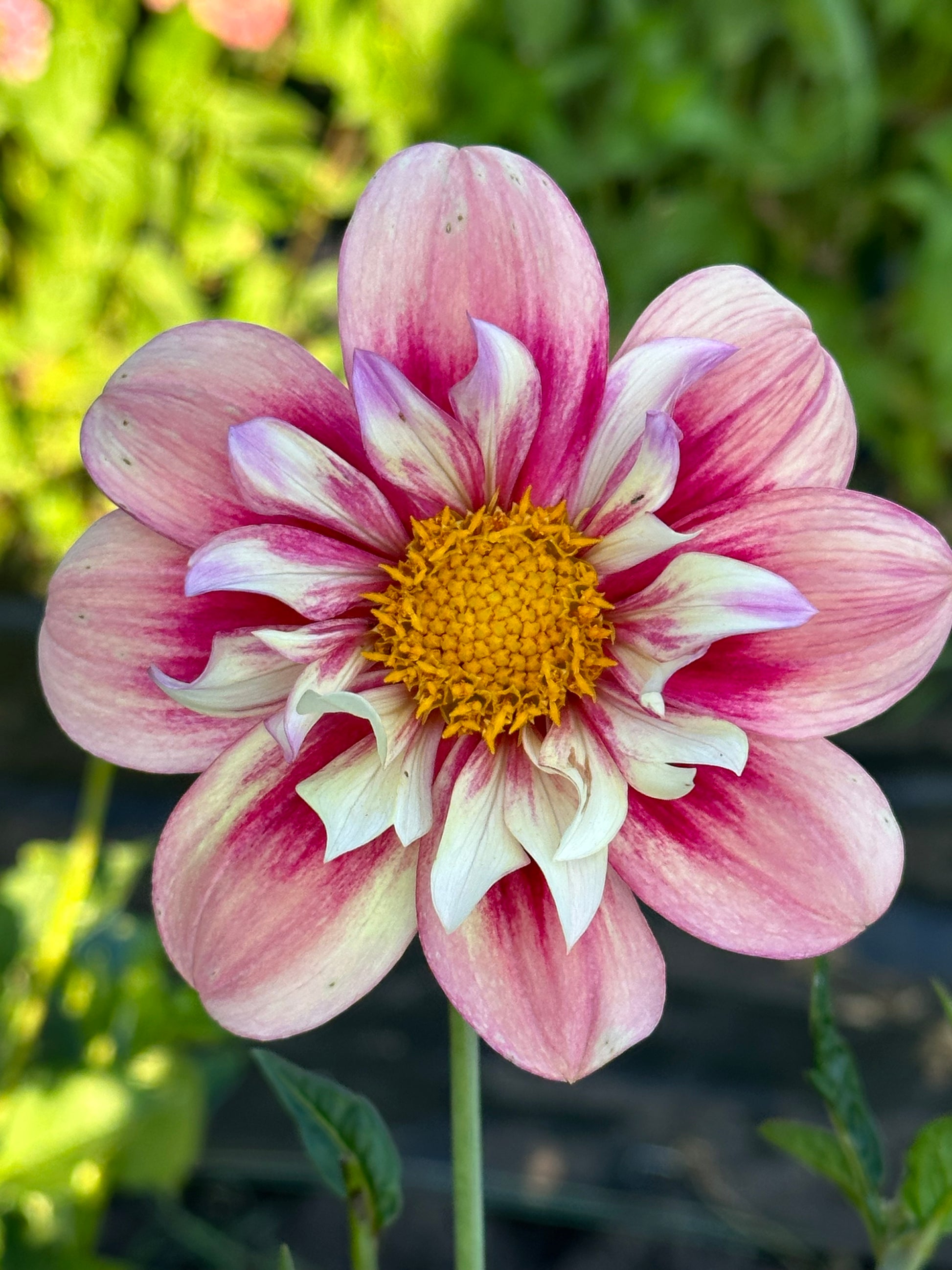Coral, peachy pink petals with creamy center petaloids. A delicate and dainty star of the garden. You will be instantly enchanted by this dahlia.