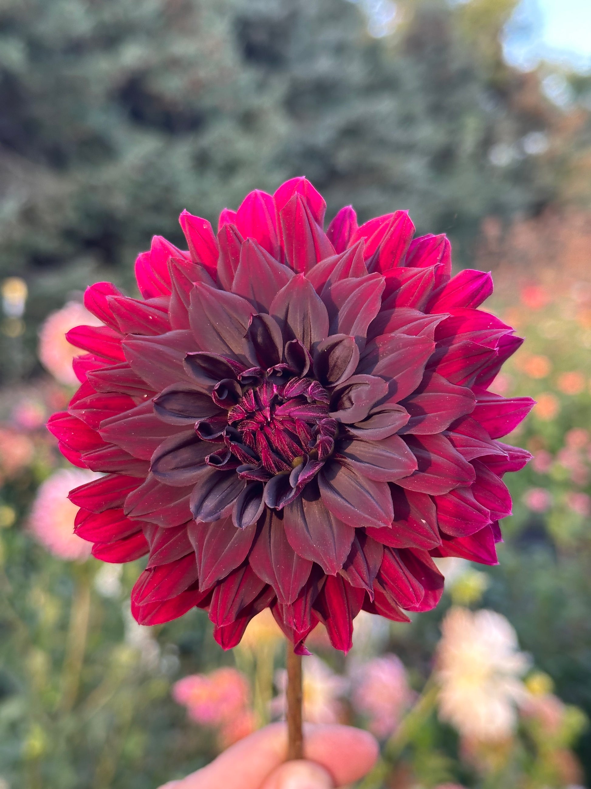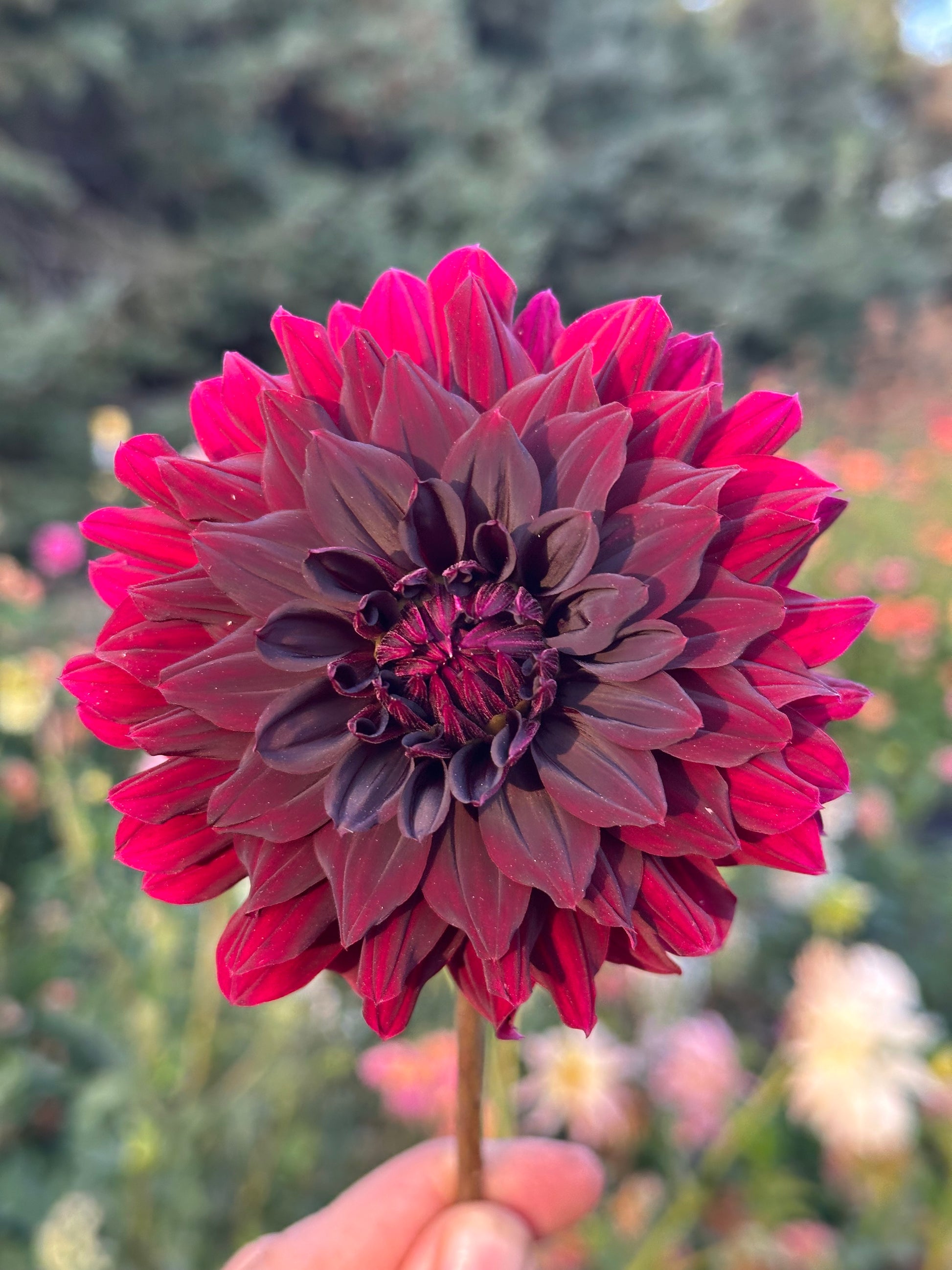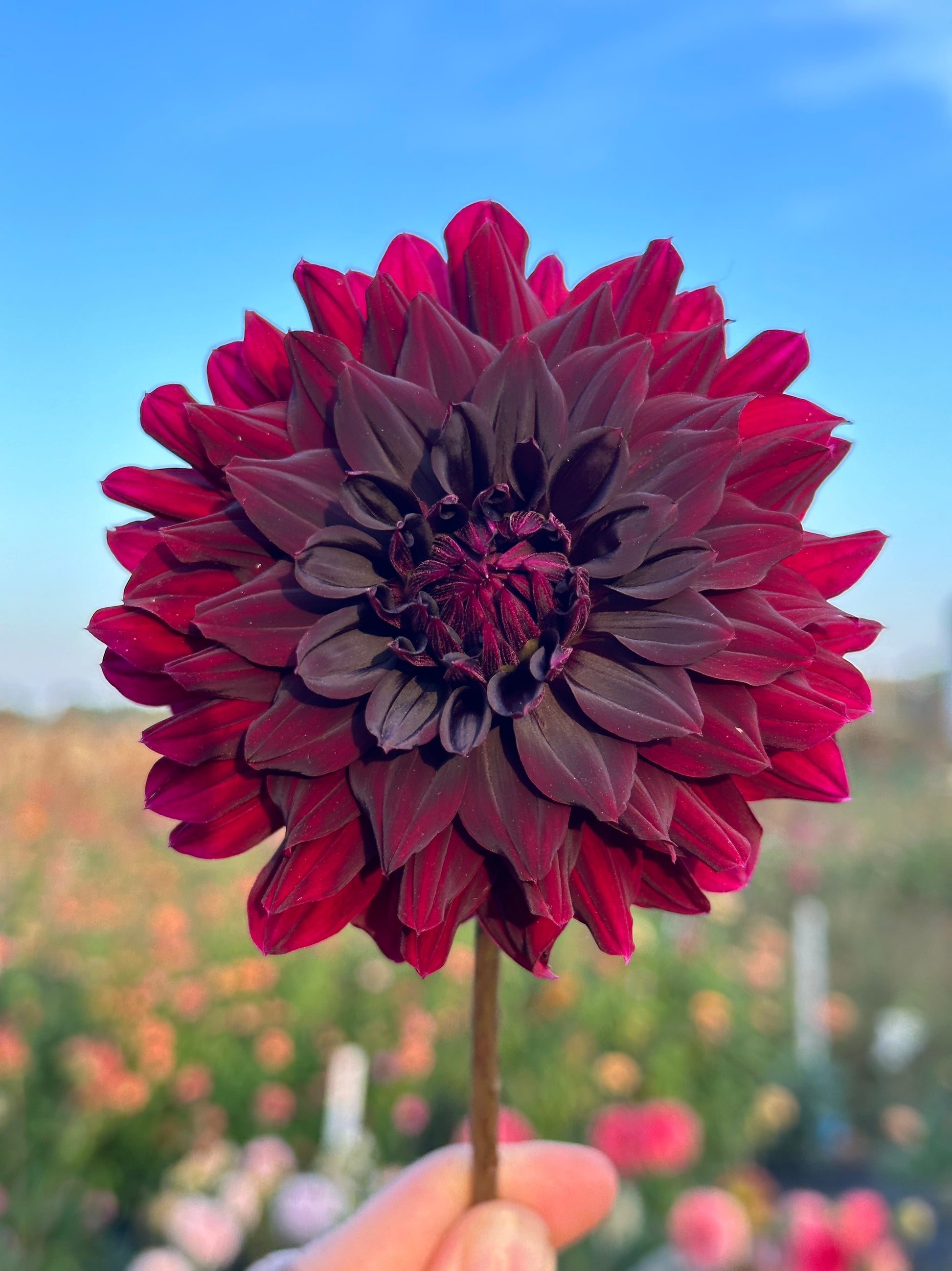 Rip City is a stunning dark burgundy that appears to black velvet in the right lighting. This dahlia will not disappoint!