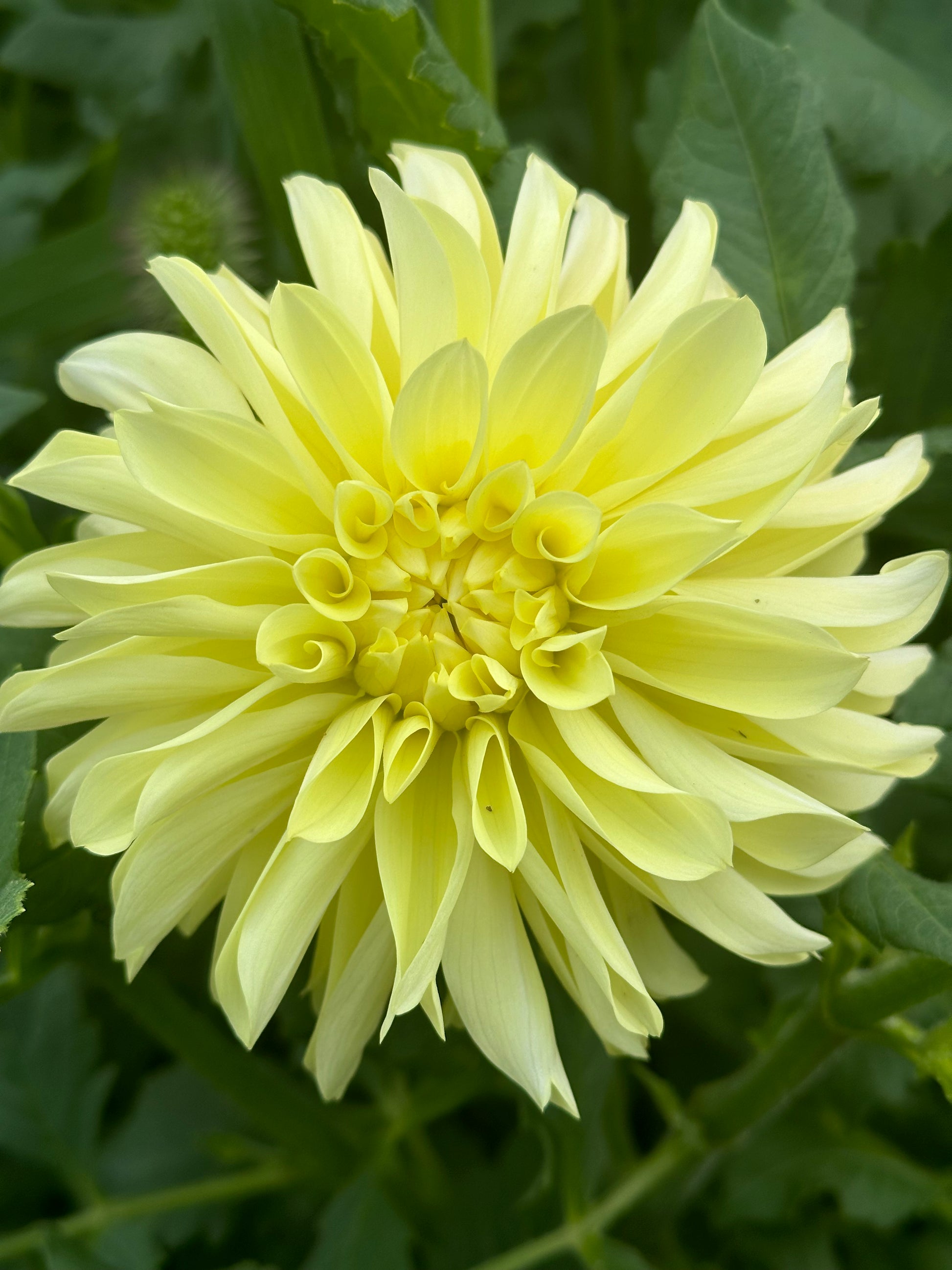 River’s Alex is a unique dahlia. It is a stellar form and its stems are fuzzy! It is a lovely sunny yellow that will brighten anyone’s day.